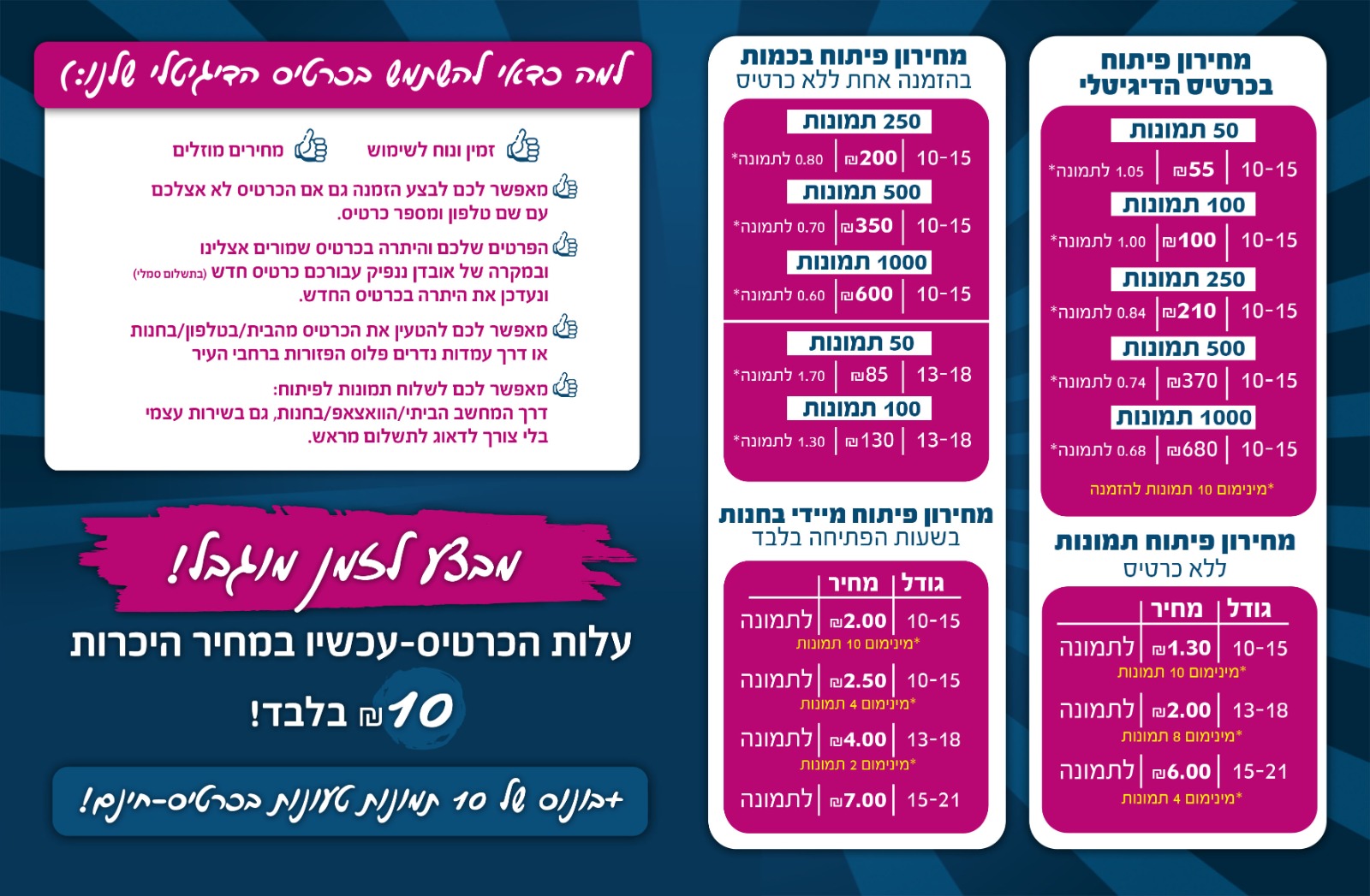 +בונוס 10 תמונות ראשונות חינם!